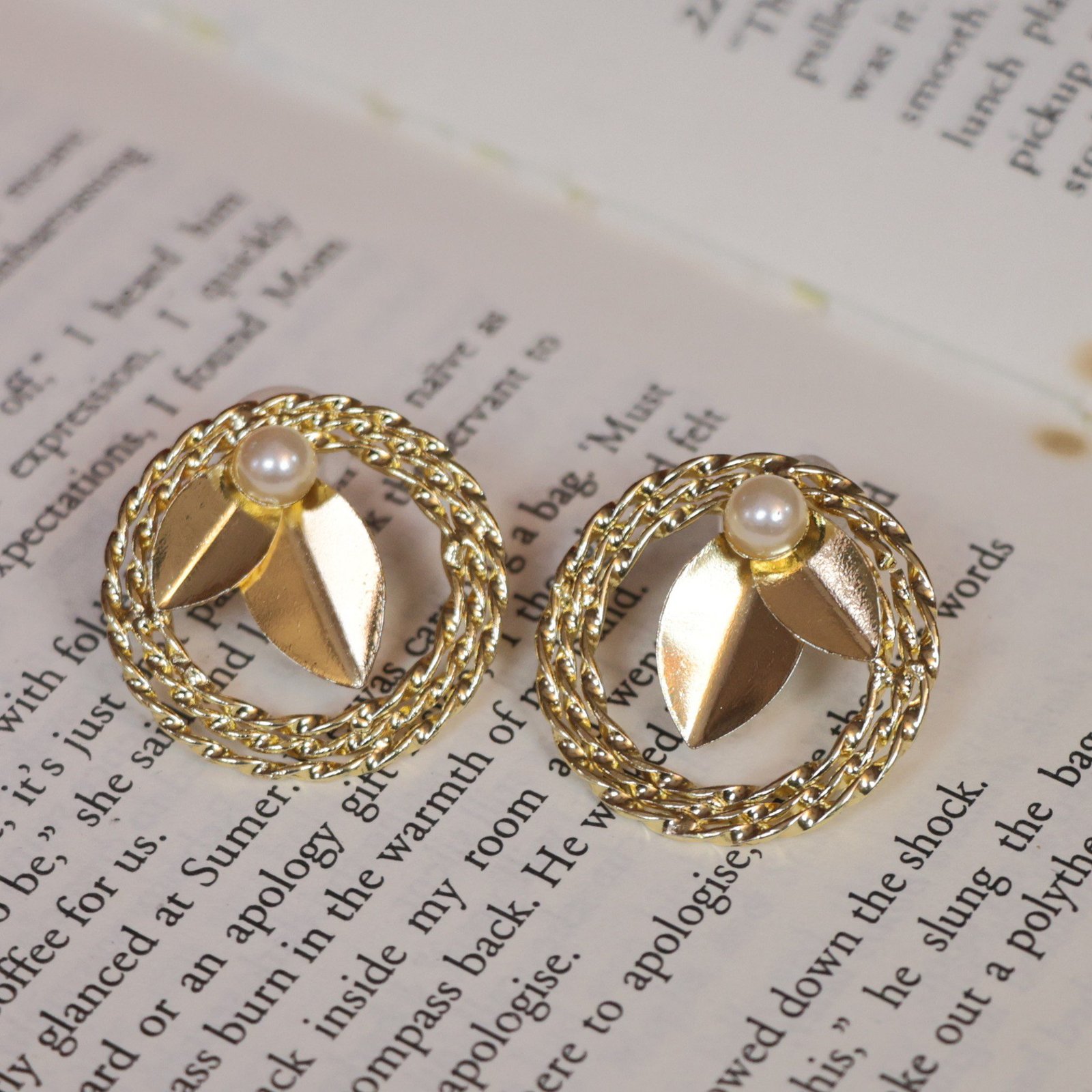 Round Leaves Pearl Brass StudsRound Leaves Pearl Brass Studs